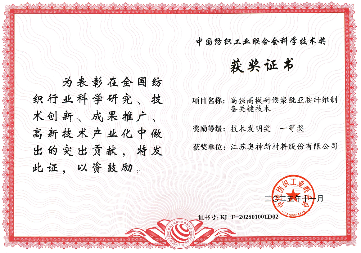 江蘇奧神新材料股份有限公司是一家專業(yè)從事聚酰亞胺高性能纖維及其后道制品的研發(fā)、生產(chǎn)、銷售為一體的國家高新技術企業(yè),公司擁有全球首條千噸級干法紡聚酰亞胺纖維生產(chǎn)線,項目及產(chǎn)品2014年通過國家級鑒定,“反應紡絲”技術國際領先。